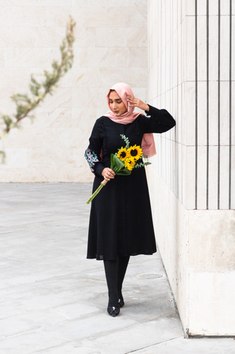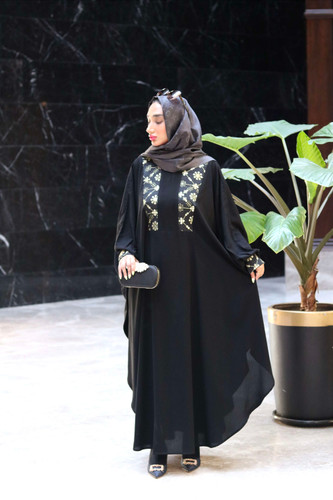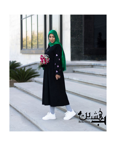 وست مشکی بلند مروارید جنس ژاکارد زربفت