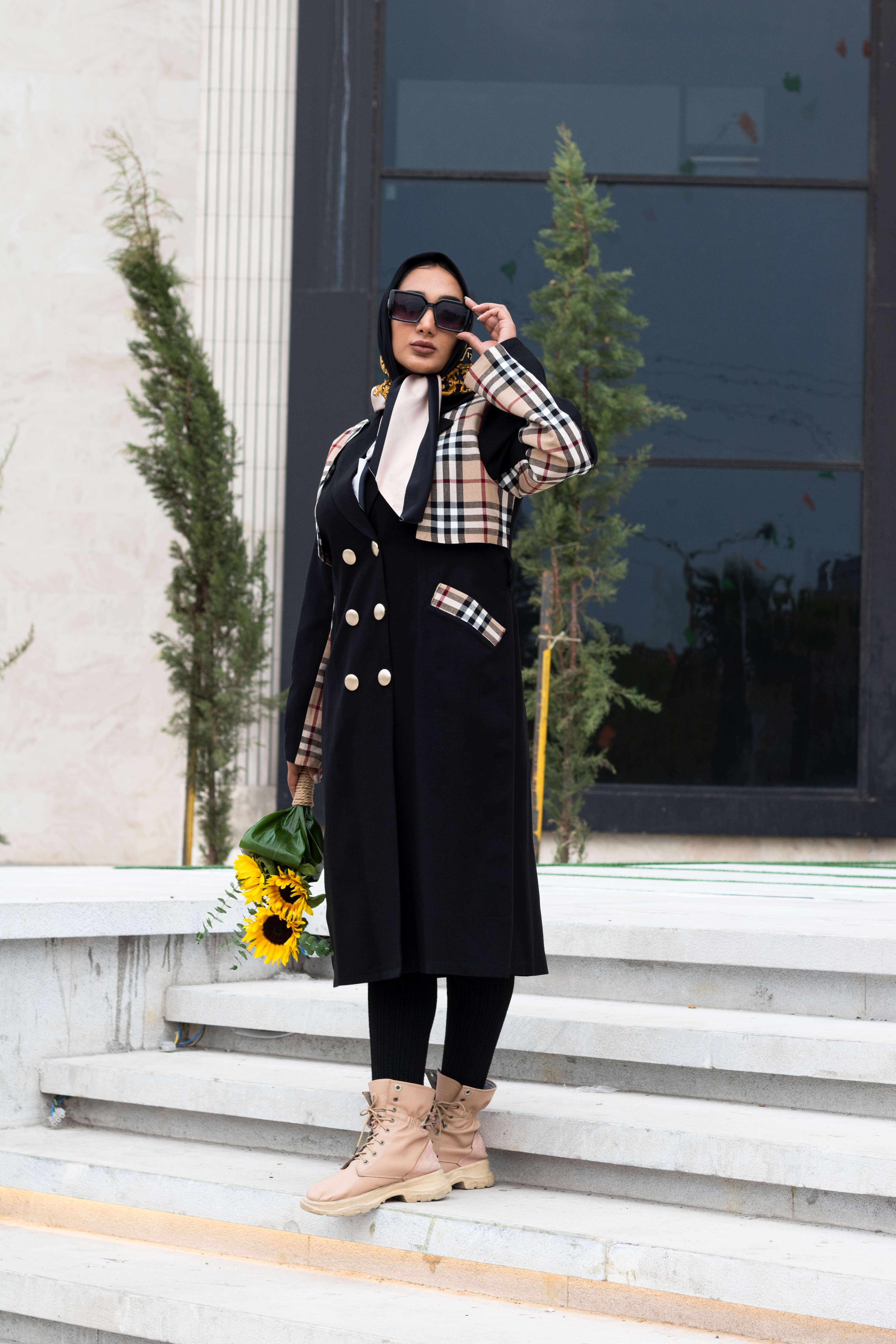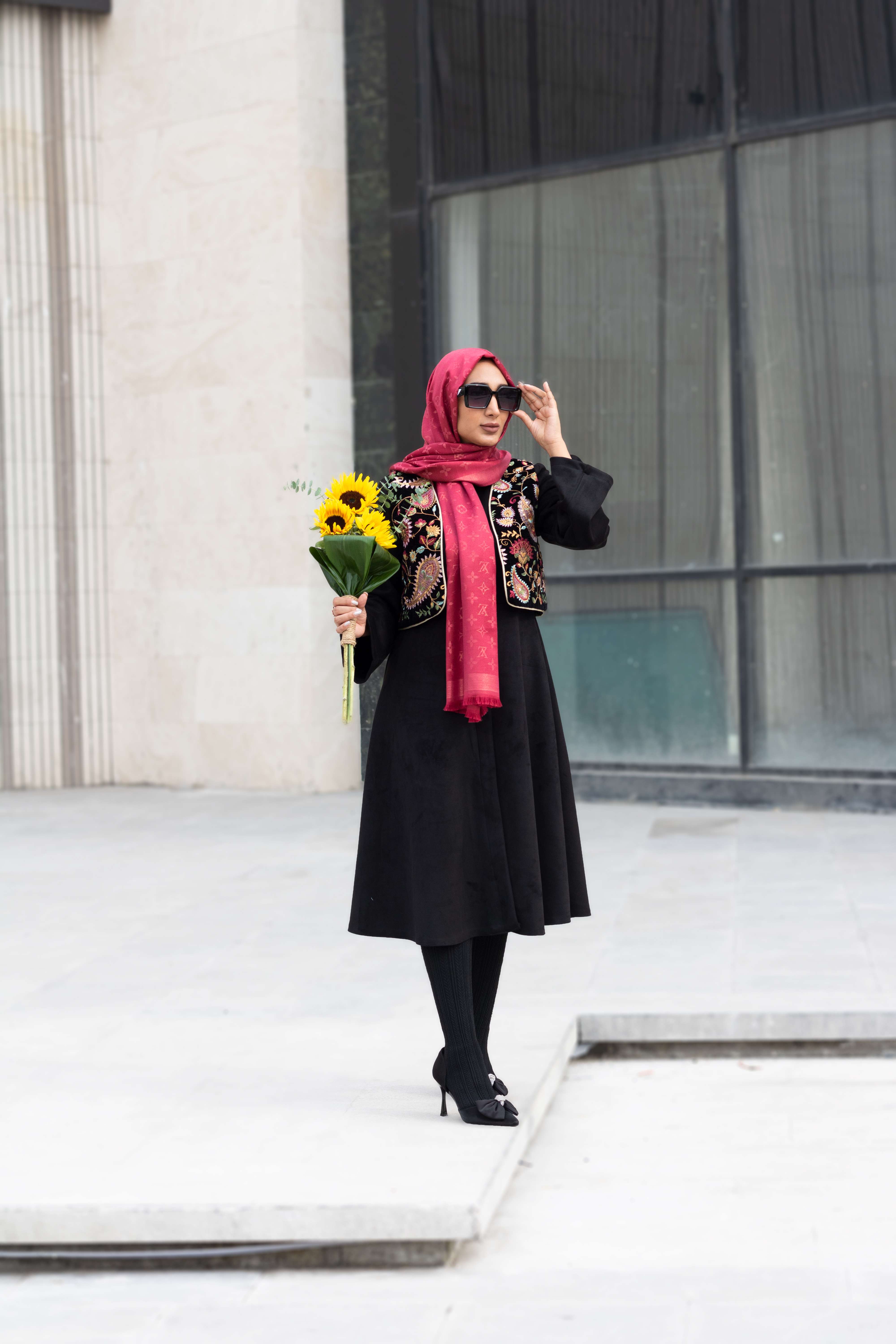 وست مشکی بلند مروارید جنس ژاکارد زربفت